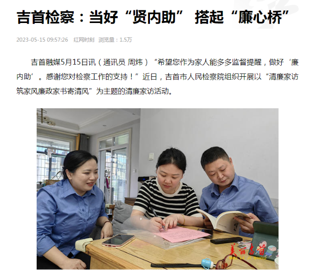【红网时刻】吉首检察:当好“贤内助” 搭起“廉心桥”