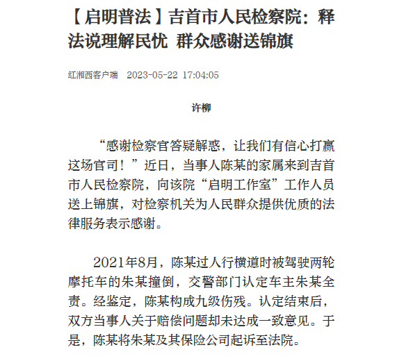 【红湘西】【启明普法】吉首市人民检察院:释法说理解民忧 群众感谢送锦旗