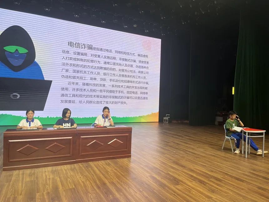 活动现场,六位学生自编自导自演了一场情景剧,用通俗易懂的方式揭露了电信诈骗的套路和手法。随后,周萃分析了该情景剧背后所隐藏的意义,并呼吁同学们提高防范诈骗的意识,谨防“被骗”和“参骗”。