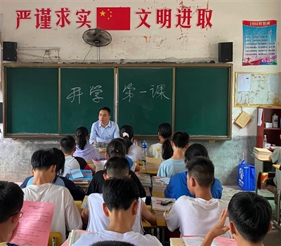 开学第1课,廖泽环到学校宣讲禁毒、反电诈等。