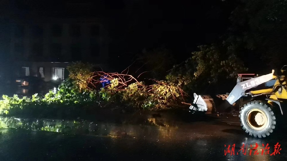 湖南法治报讯(通讯员 黄展徕 李厚桥)“107国道五甲村废弃加油站对面路旁的大树被大风刮倒了,横倒在107国道上。”6月22日端午节晚上9点,宜章县第十届政协委员、黄沙镇较场坪村治保主任程清平驾车途经107国道五甲村废弃加油站时发现道路隐患:断裂的树枝干横倒在107国道形成路障,占据国道路面一大半,造成来往车辆只能单线行驶。程清平便立即在黄沙镇定员干部微信群里告知了情况,同时,将车停放在路断树前亮起车灯起到临时警示作用。