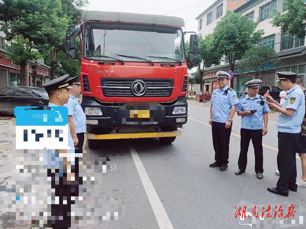 安乡交警查处一起大货车故意遮挡号牌的违法行为