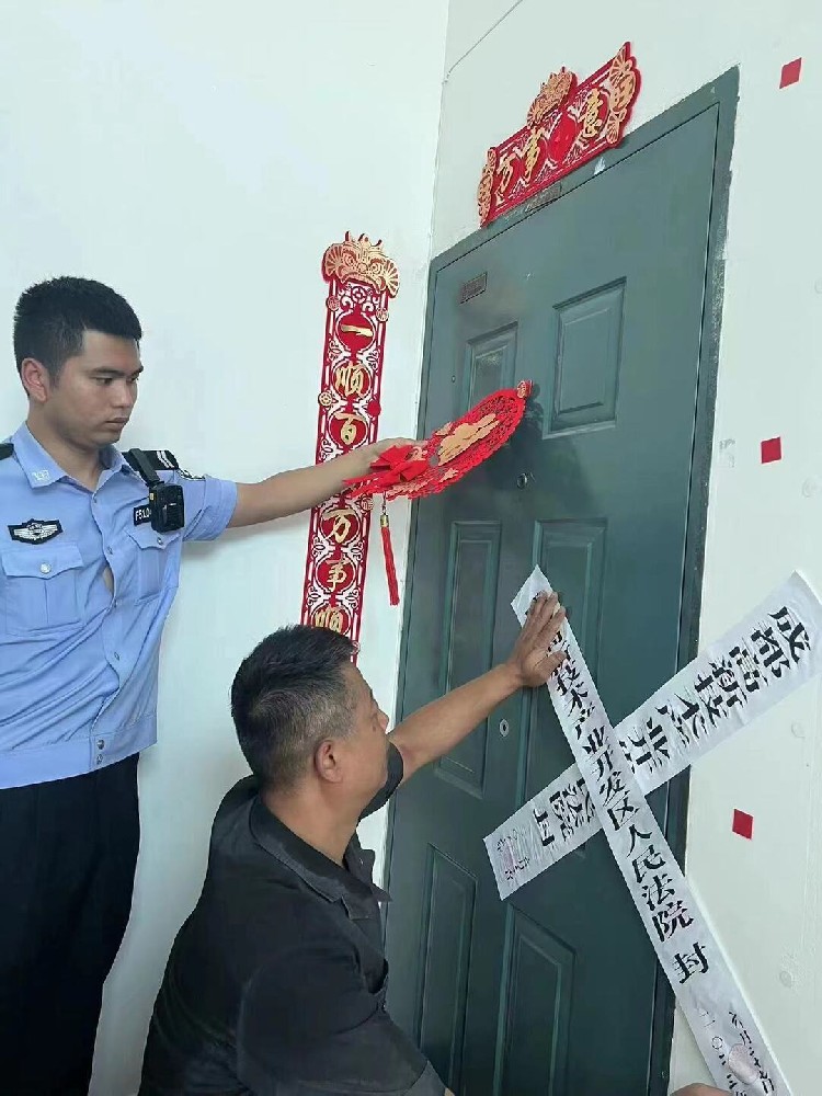 成都高新技术开发区人民法院在执行借款合同纠纷案件过程中,查询发现被执行人刘某名下持有一套株洲天元区某地的房屋。为尽快拍卖房屋,及时维护申请执行人的合法权益,成都高新技术开发区人民法院在线上委托天元区法院送达腾房公告等相关文书。腾房期限到期后,被执行人仍占有房屋,拒不搬离,成都高新技术开发区人民法院遂派三名干警来到株洲线下开展腾退房屋等后续执行工作。