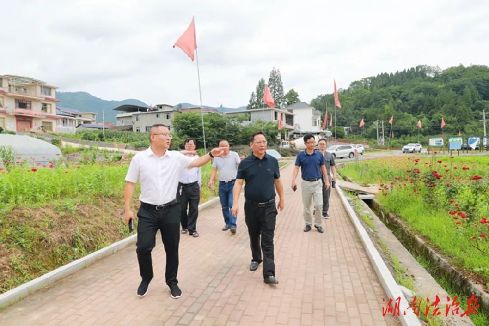 湖南法治报讯(通讯员 陈醉)为全面落实乡村振兴战略与定点帮扶计划,进一步巩固脱贫攻坚成果,7月6日,张家界中院党组书记、院长陈建新赴驻村帮扶驻点村桑植县澧源镇兴旺塔村调研乡村振兴工作。党组成员、政治部主任高忠志,澧源镇党委书记陈彬陪同调研。