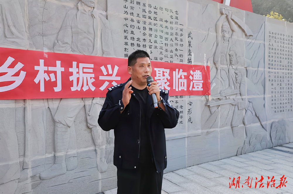 临澧县森林公安局政委俞宏武在活动现场宣讲法律知识。