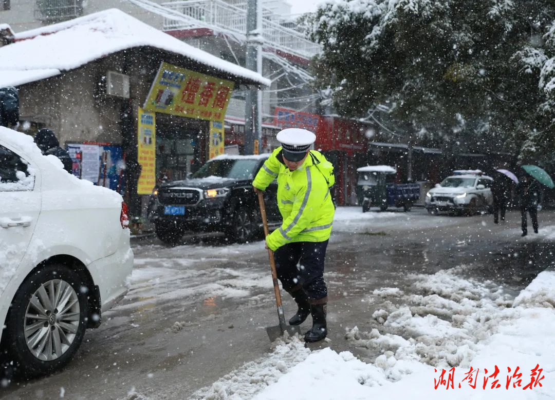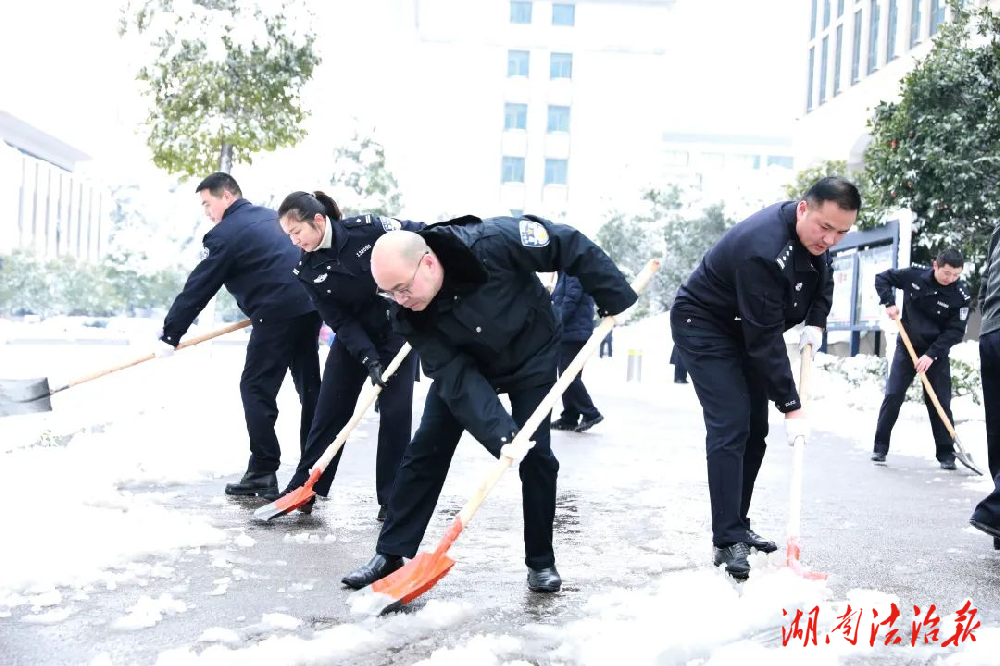 湖南法治报讯(通讯员 双峰县公安局)1月21日晚-22日,2024年第一场雪如期而至。为切实保障群众出行平安,副县长、公安局局长李放带队,组织民警、辅警在城区主要街道开展铲雪活动,大家热情高涨,为清除积雪结冰造成的道路安全隐患干劲十足、全力以赴。