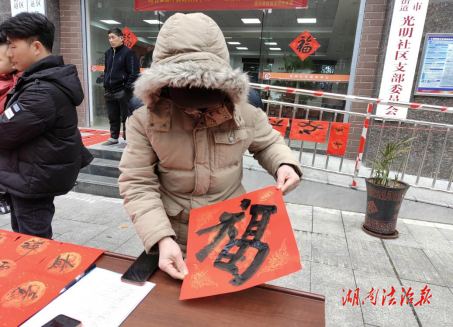 湖南法治报讯(通讯员 邱鹏)“迎新春、贴春联”是中华民族一直延续的传统,象征着吉祥,表达人们向往美好生活的民族风俗。近日,衡阳市石鼓区黄沙湾街道光明社区开展新春送福送安全活动,增强辖区居民群众防火安全意识,增加居民的幸福感。