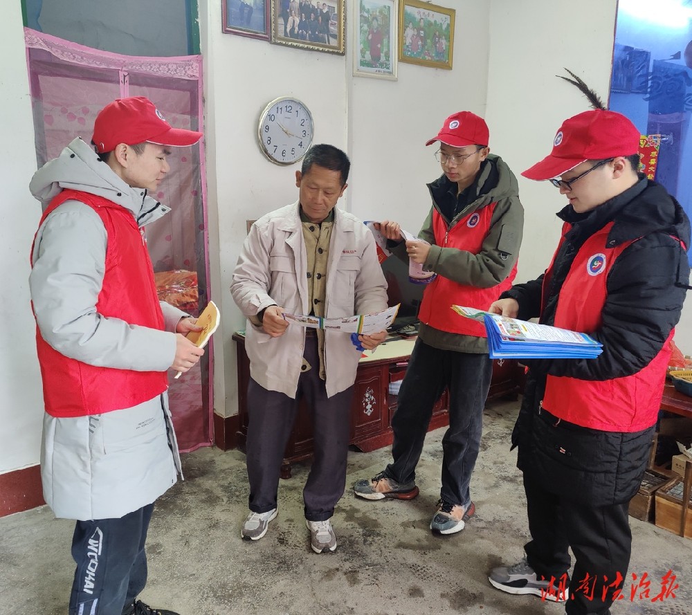 “叔叔,您好!我们是大学生普法志愿者,这是禁毒宣传资料,请您阅读了解下。”“毒品对个人和家庭及社会都会造成严重的危害,咱们要远离毒品……”1月29日,宜章县黄沙镇曹家坌村兰明灿、兰家俊、兰静文3名大学生志愿者寒假之后主动入户开展禁毒宣传活动。