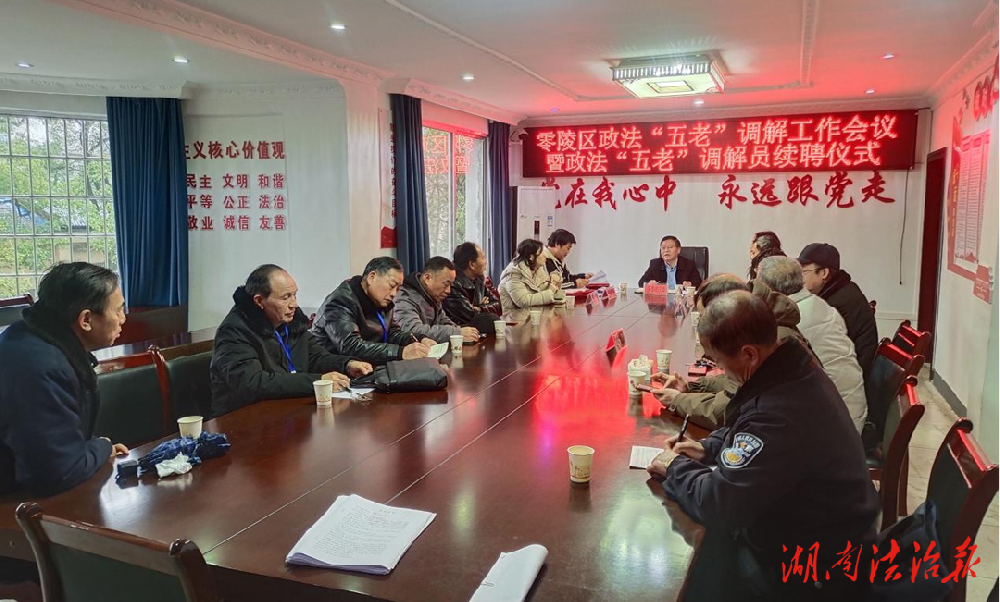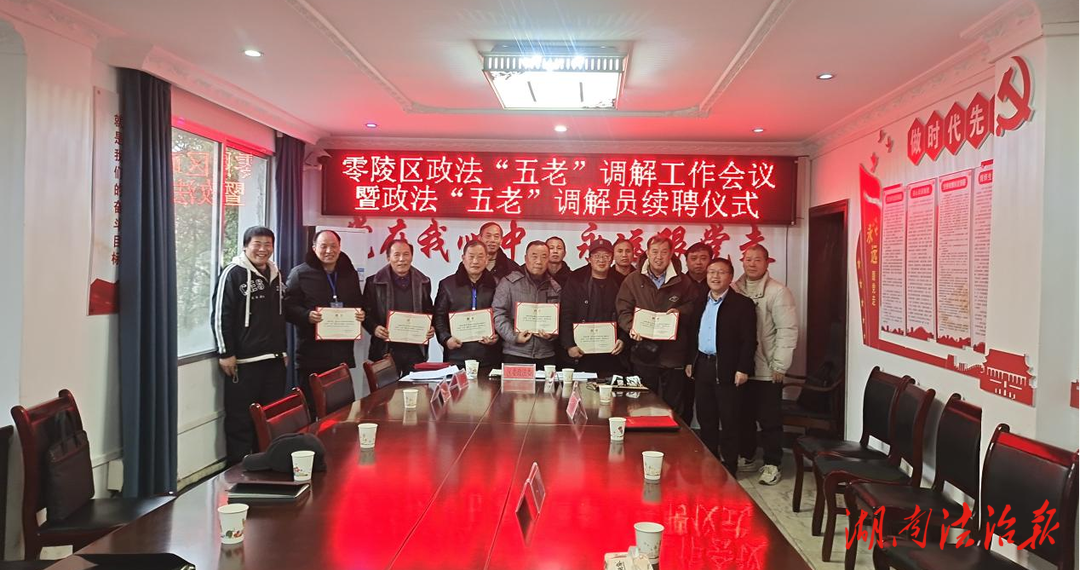 湖南法治报讯(通讯员 眭亚辉 陈刚正)为深入践行和发展新时代“枫桥经验”,提升基层治理效能,推动全区政法“五老”调解工作全面开展。2月2日,零陵区召开2024年全区政法“五老”调解工作会议暨政法“五老”调解员续聘仪式。会议由区委政法委三级调研员周耀军主持,区人民法院、区人民检察院、区公安分局、区司法局、区信访局分管领导,区政法“五老”调解员10余名代表参加会议。