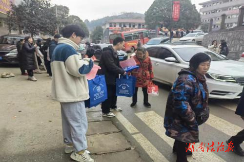 湖南法治报讯(通讯员 朱华)春节临近之际,为丰富节前群众法治文化生活,充分发挥高校大学生普法作用,2月1日上午,均坪司法所联合镇政府、派出所组织返镇大学生在均坪镇集市,开展大学生“送法下乡”志愿服务活动。