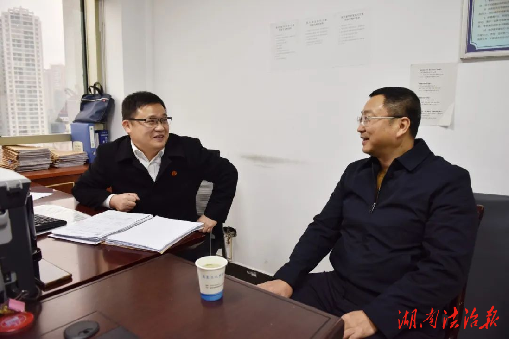 曾文彬一行首先前往优秀干警代表贺国强、刘玮等人的办公室,与干警们亲切交流,详细了解干警的工作情况和生活状况,询问干警的意见建议和困难需求,曾文彬对各位干警多年以来持之以恒的忠诚履职、辛勤付出和取得的荣誉表示肯定和感谢,希望他们继续以饱满的热情投身服务经济社会发展大局,守护湘中大地的公正与法治。