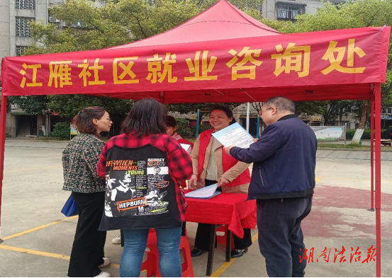 湖南法治报讯(通讯员 邹红霞 周湘如) 为解决辖区居民未就业人群及返乡居民就业难、企业招工难等问题,实现家门口就业,全力保障企业用工需求。 2024年3月27日上午,衡阳市石鼓区江雁社区在社区广场举办了“为群众办实事.充分就业慧民生”主题大型宣传、用工招聘活动。