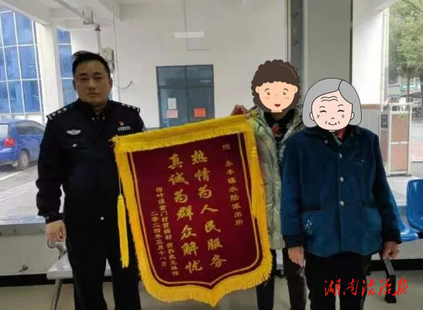 湖南法治报讯(通讯员 李永琪)近日,双峰县公安局永丰水陆派出所民警快速出警,仅用1小时成功找到走失老人,群众为民警赠锦旗点赞。