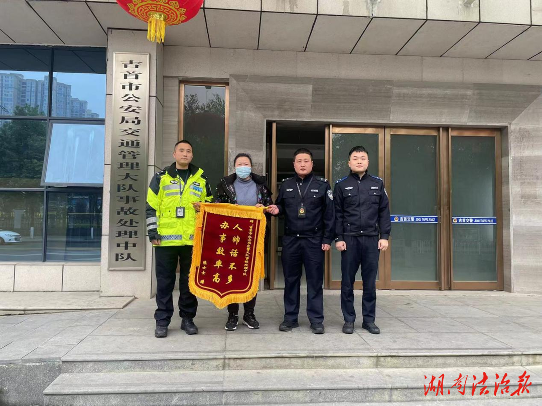 鲜红的锦旗是荣誉、是褒奖、更是责任和鞭策,锦旗虽轻,情谊深重,字里行间饱含着群众对人民警察的感激之情。吉首交警将以此为动力,时刻坚守自己的岗位职责,不忘初心,牢记使命,用实际行动勇敢担当起新时代赋予的重任。