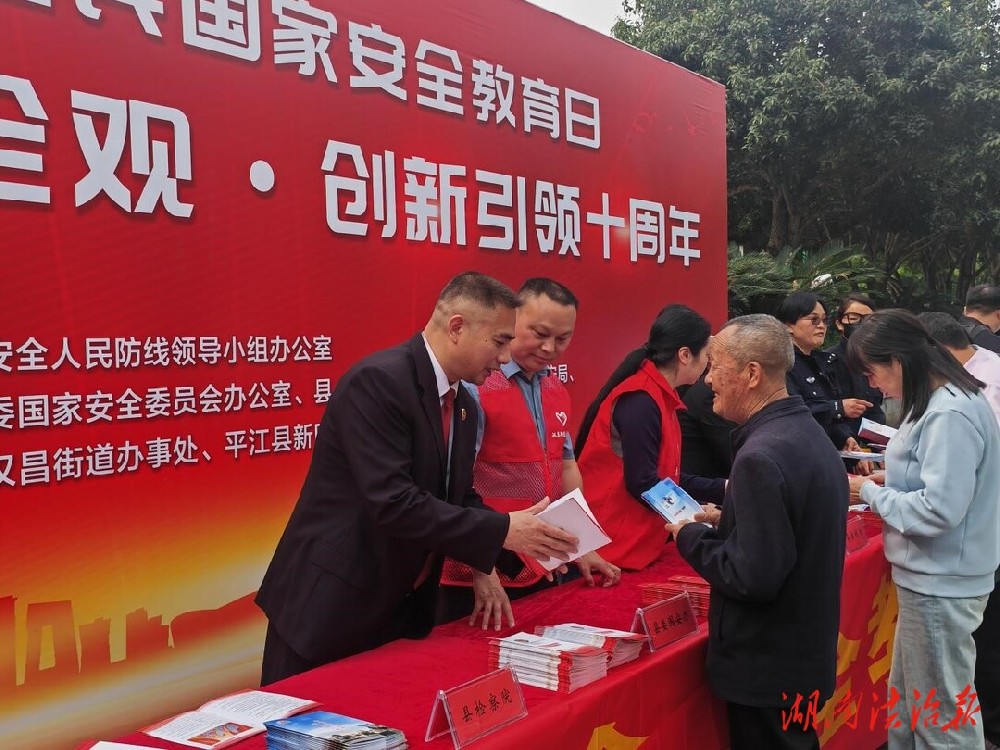 湖南法治报讯(通讯员 周宇婷)2024年4月15日,是第九个国家安全教育日。为深入贯彻总体国家安全观,增强全民国家安全意识,平江县人民检察院组织干警参加县委政法委开展的“总体国家安全观·创新引领10周年”主题集中宣传教育活动。