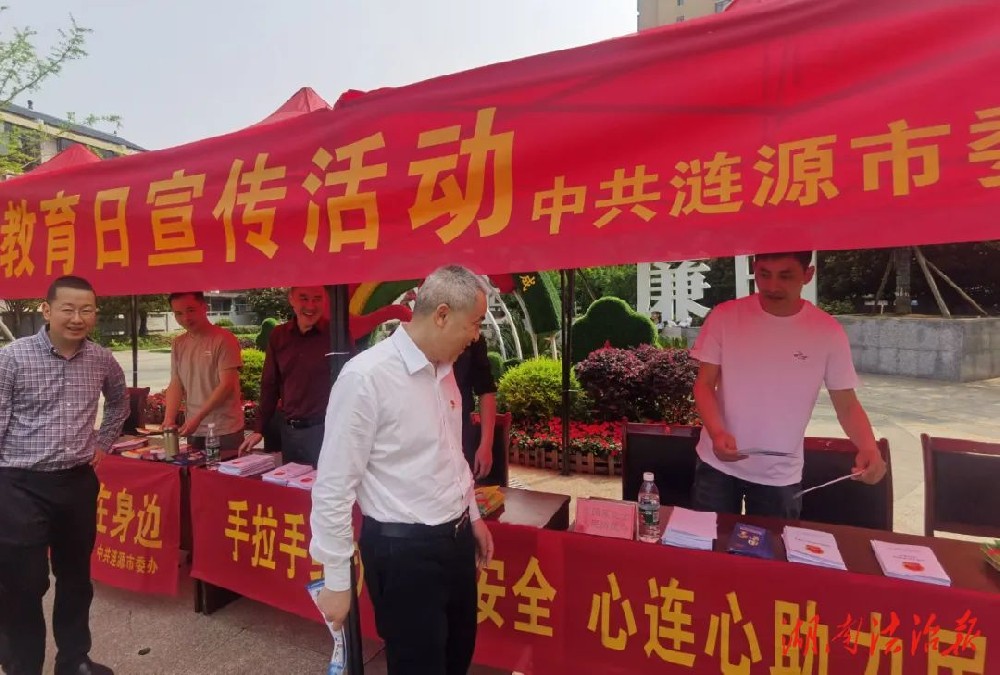 湖南法治报讯(通讯员 刘慧)2024年4月15日,涟源市在国师广场举行了第9个全民国家安全教育日宣传教育活动。市委书记刘杰,市委常委、市委政法委书记易专,市委常委、市委办主任李付明参加活动。