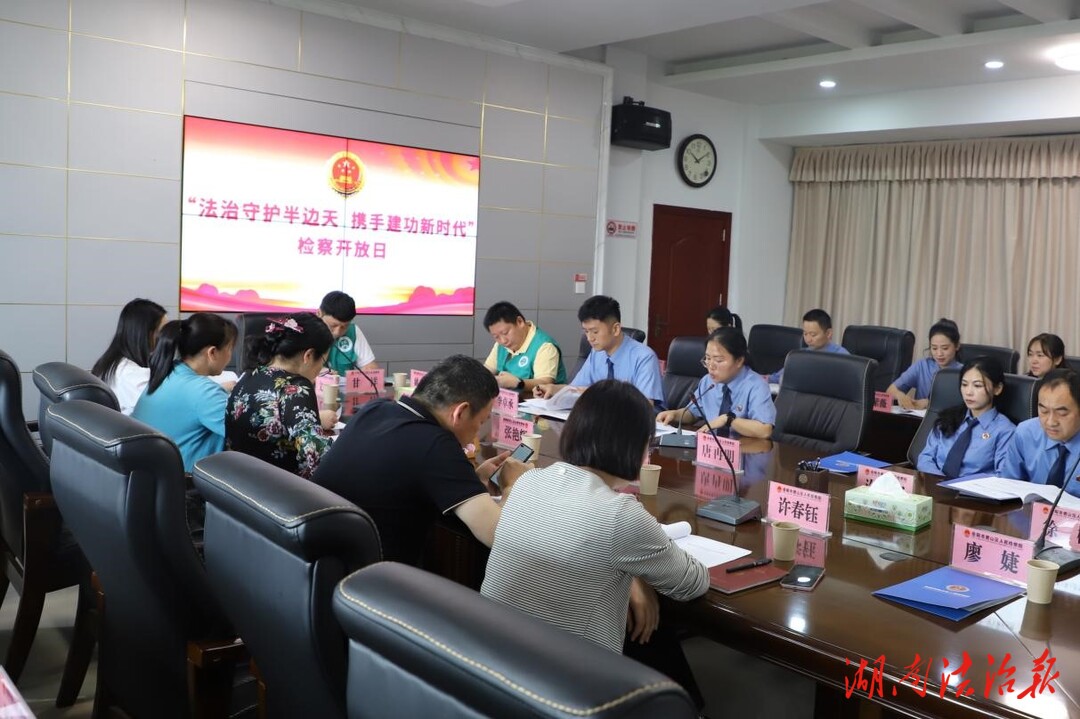 为持续深化妇女儿童权益保护工作,推动构建全社会尊重和保障妇女儿童合法权益的良好氛围,4月26日,君山区人民检察院开展“法治守护半边天,携手建功新时代”检察开放日活动。本次活动邀请人大代表、政协委员、君山区妇联主席张艳辉、乡镇(街道)分管妇女工作负责人、岳阳市幸福社会服务工作中心负责同志等代表参加。副检察长袁如意主持活动。