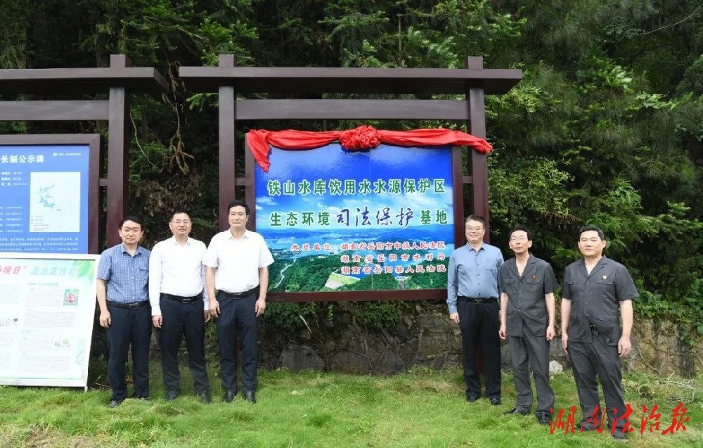 为加强全国重要饮用水水源地——铁山饮用水源地环境资源司法保护力度,积极统筹推进铁山饮用水源地水资源保护、水污染防治、水生态修复、水安全保障,6月4日,在第53个“世界环境日”来临之际,岳阳市中级人民法院、岳阳市水利局、岳阳县人民法院联合共建的铁山水库饮用水水源保护区生态环境司法保护基地揭牌成立。