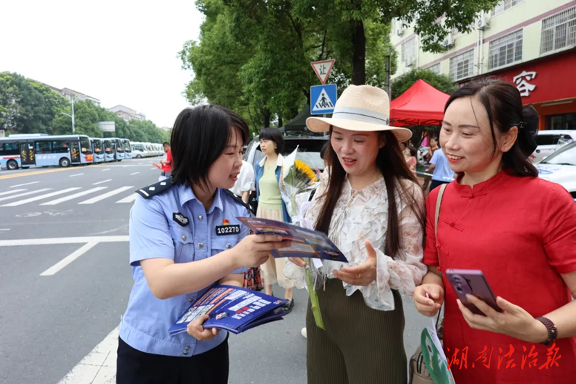 桃源县公安局交警大队在考场外设立了“藏蓝巾帼志愿者服务岗”,为考生和家长们准备了矿泉水,并向家长们发放交通安全宣传册。