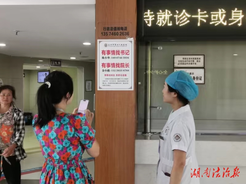 据了解,6月份开始零陵区内各医疗机构都在各楼层显眼位置设置了“有事情找书记、院长”提示牌,公开了联系电话,提示患者在就医过程中遇到工作人员服务态度不好、不在岗在位,看病有困难和不满意之处的问题,可以直接联系医院的党组织书记、院长,反映困难诉求,医院党组织书记、院长将当好“第一服务员”,竭力为广大患者、人民群众排忧解难。零陵区纪委驻卫健局纪检监察组同时加强监督,让此项举措落实不走样。