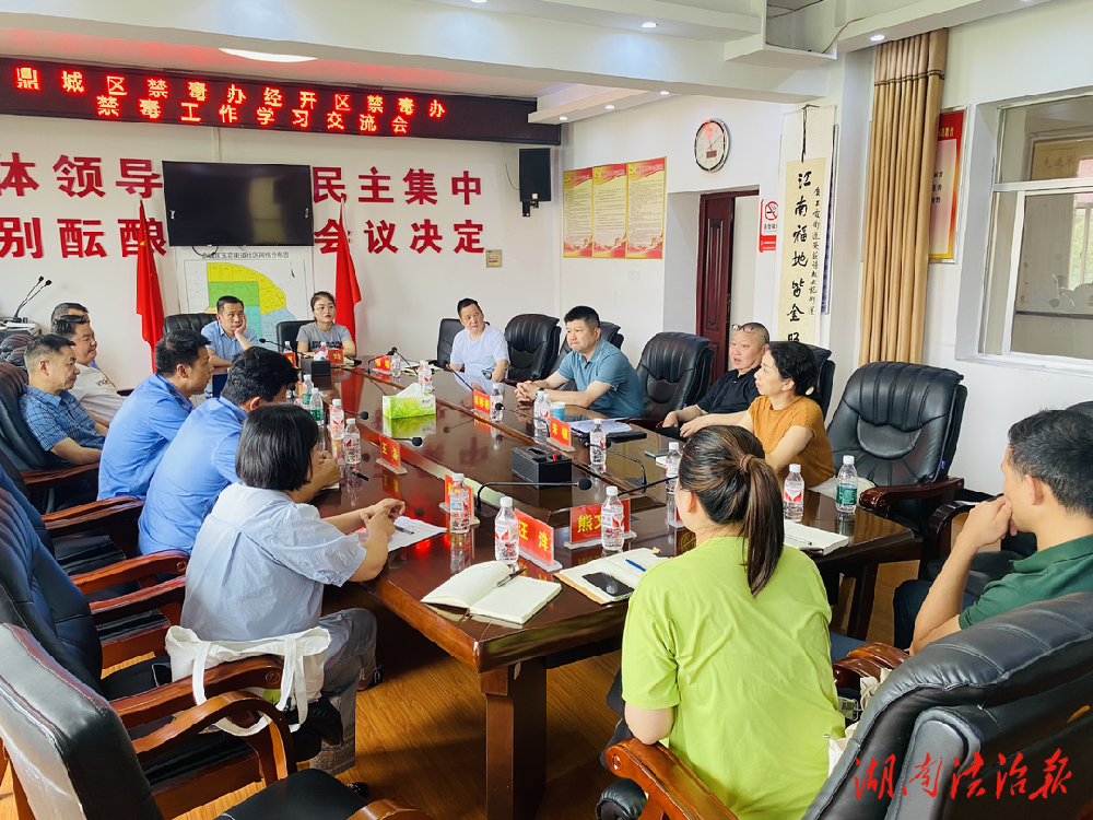 6月7日上午,常德经开区禁毒办常务副主任、区公安局党委委员、副局长何健,区平安办副主任、区禁毒办副主任彭友利带队组织德山街道、樟木桥街道、石门桥镇等3个街道(乡镇)8名禁毒专干到鼎城区玉霞街道学习交流。鼎城区禁毒办常务副主任、公安局党委委员、副局长蒋彬彬,区禁毒办专职副主任朱镇陪同交流。