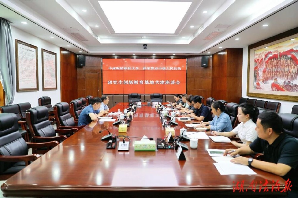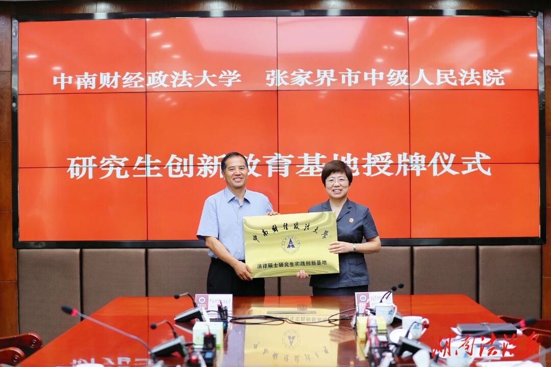 湖南法治报讯(通讯员 李胜 陈醉)6月14日,张家界市中级人民法院与中南财经政法大学在张家界举行研究生创新教育基地共建签约授牌仪式。中南财经政法大学法律硕士教育中心主任简基松,市中院党组成员、副院长伍少杰,市中院党组成员、政治部主任高忠志,市中院审委会专职委员彭军出席活动。