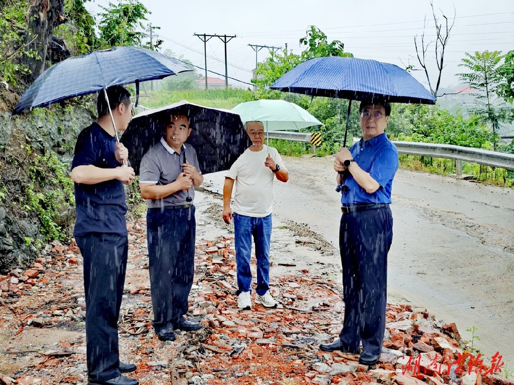 刘春宇一行先后来到车队后老旧房屋、围墙处,一工区铁路桥旁临路斜坡隐患点,实地查看道路受损、房屋建筑和山体滑坡隐患等情况,仔细听取留守处工作人员关于应急处置情况的汇报。