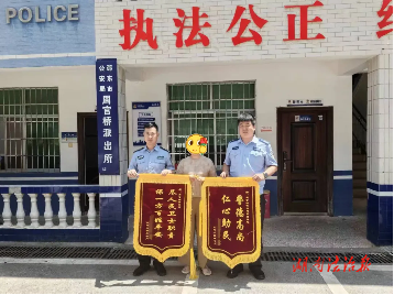 湖南法治报讯(通讯员 李爽)7月5日,赵女士将印有“警德高尚 仁心助民”“尽人民卫士职责 保一方百姓平安”的锦旗赠至周官桥派出所民辅警手中,对民辅警的热心救助表达感激之情。