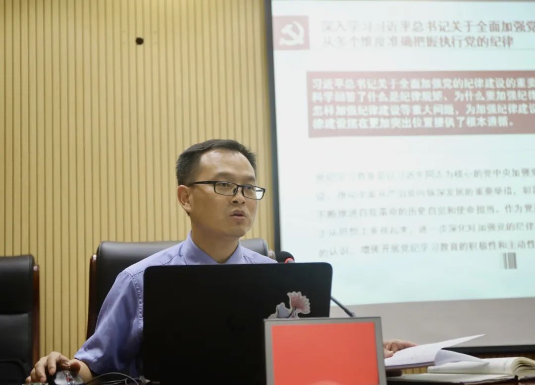 会上,黄贻林以《使铁的纪律转化为党员干部的自觉遵循,让铁纪“长牙”警钟长鸣》为题讲授党课。他强调,全院党员干部要深入学习习近平总书记关于全面加强党的纪律建设的重要论述,从历史维度、理论维度、实践维度准确把握执行党的纪律;要深刻认识开展党纪学习教育的重大意义,以高度的政治自觉推动党纪学习教育走深走实;要通过党纪学习教育涵养个人修养和家教家风,慎独慎初、慎小慎微、慎权慎欲、慎言慎行、慎友慎情,切实守住底线、守牢红线。