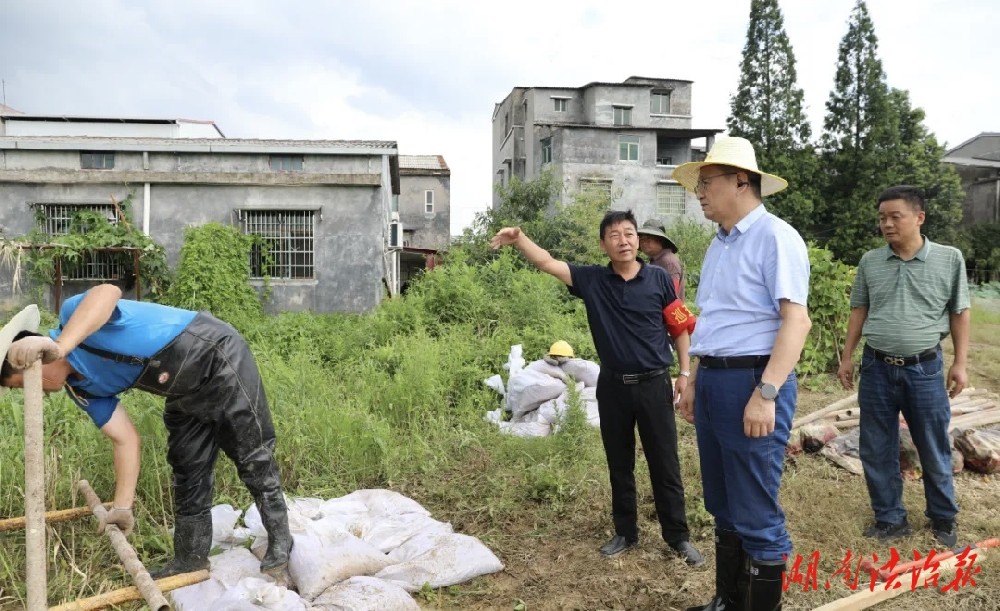 面对连续雨情,6月24日,院党组书记、代检察长刘春生组织党组会(扩大)会议,对防汛工作进行安排部署,要求严格执行领导带班、24小时值班值守制度,建立上下贯通、指挥顺畅、落实有力的防汛指挥体系。刘春生检察长率先垂范,先后多次带领检察干警来到联点乡镇,在湘滨镇洞庭围村防汛堤段、酬塘湖内湖泄洪口,排涝能力、物资储备、防汛防灾等情况;在湘滨镇和平闸泵站、白马寺老街等处,实地了解当前险情处置、排涝进展、泵站运行以及人员转移等相关情况;在湘阴县湘滨镇洞庭围村黄金台发现险情时,第一时间赶到现场,查看灾情,组织搭建观察桥,积极开展防汛备汛检查督导工作。