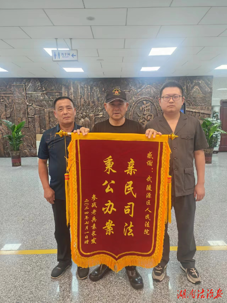 湖南法治报讯(通讯员 陈琳)“感谢武陵源法院,感谢法官,帮我追回了拖欠了几年的欠款”。近日,一名退伍老兵袁某某将一面“亲民司法,秉公办案”的锦旗送到法院,表达对武陵源法院司法为民、如我在诉、务实担当的满意、认同和感激。