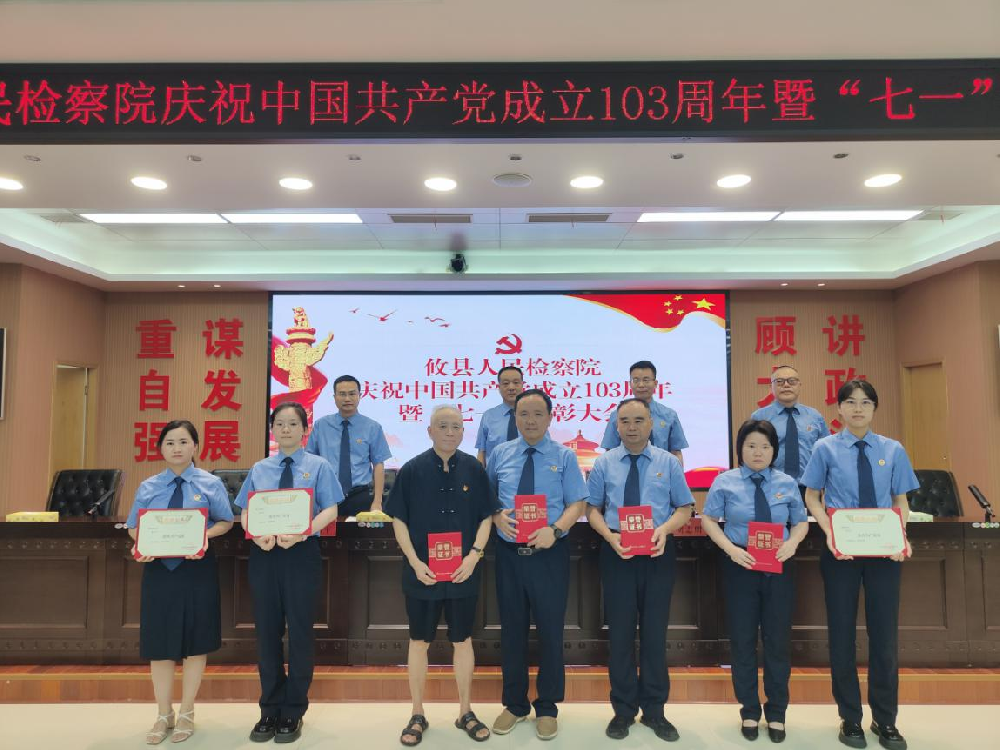 该院举办庆祝建党103周年大会,对优秀共产党员、优秀党务工作者进行表彰,并颁发“光荣在党50年”纪念章和“从检30年”检察荣誉章。表彰不仅是一份荣誉,更是一份责任,不仅是一种铭记和肯定,更是一种动员和号召。