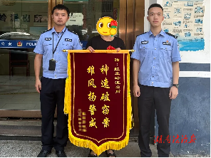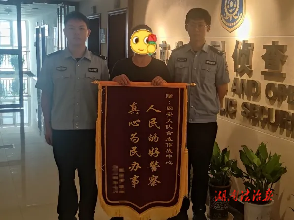 7月10日上午,辖区居民陈女士将两面印有“人民好警察、真心为民办事”“神速破盗窃、雄风扬警威”的锦旗分别送至邵东市公安局合成作战中心与红土岭派出所民警手中,对其及时帮助自己找回被盗电动车表示感谢。