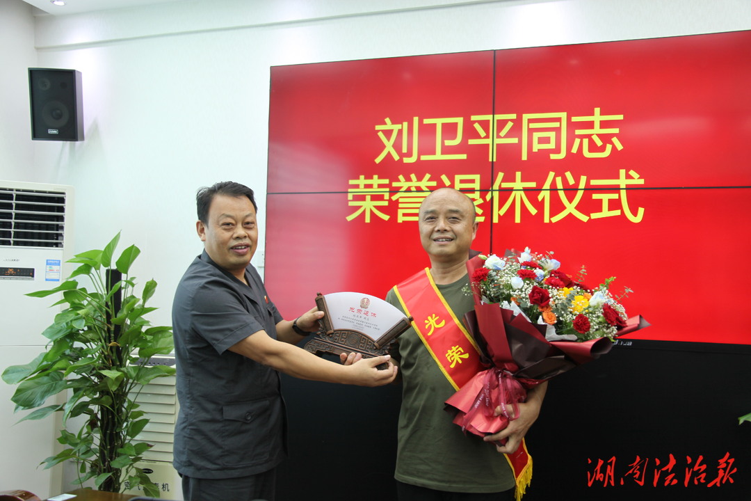 湖南法治报讯(通讯员 李真)为进一步增强退休干部的归属感、荣誉感和幸福感,7月12日,泸溪县人民法院为该院退休的刘卫平同志举行荣誉退休仪式。