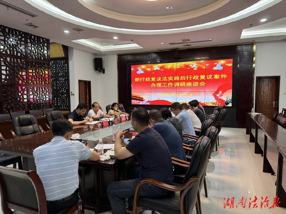 调研座谈会上,调研组着重了解实施新修订《行政复议法》以来,祁阳市在行政复议案件办理工作中存在的突出问题、产生问题的原因及对贯彻实施新修订《行政复议法》的意见建议,市自然资源局、市市场监督管理局、市人社局等部门相关负责人参加座谈并就相关领域行政复议工作情况进行了汇报交流。