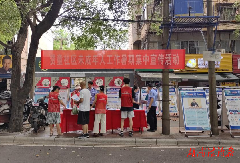 湖南法治报讯(通讯员 杨深源)为增强未成年人的法律和安全意识,加强清廉教育,推动普法宣传,7月16日,娄底市娄星区乐坪街道贤童社区联合社区警务室、便民服务站、计生协志愿者在贤童街开展暑期集中普法宣传活动。