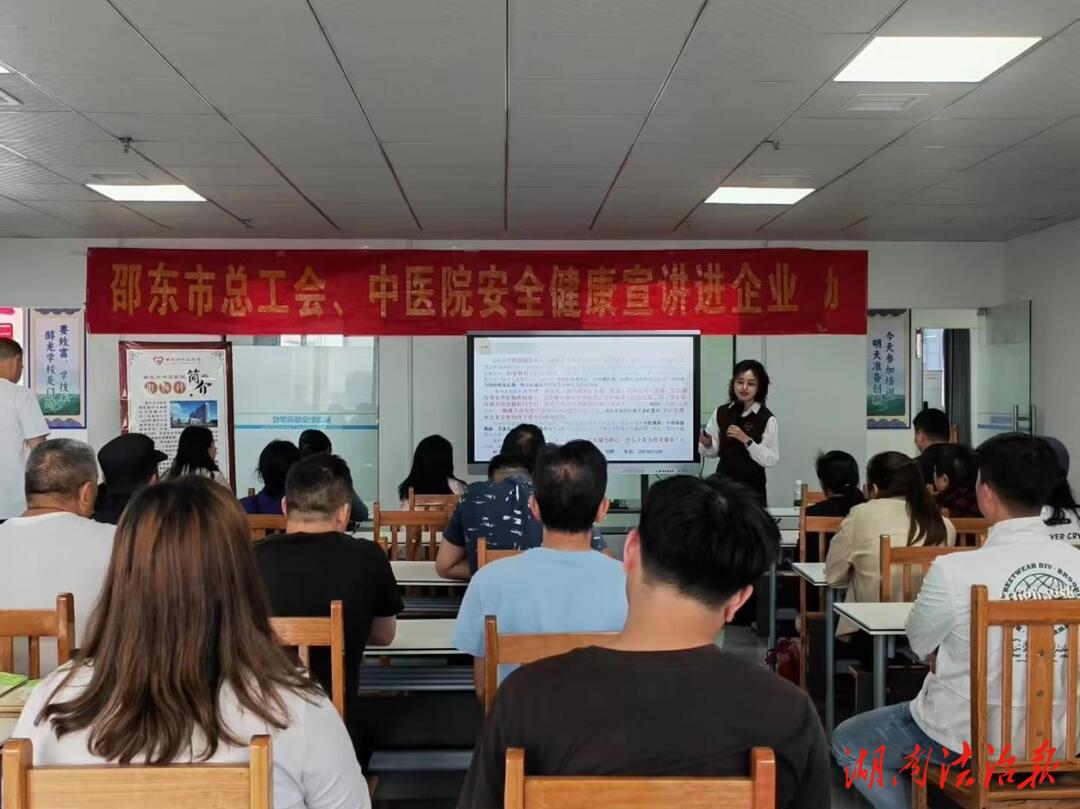 湖南法治报讯(通讯员 冒亚兰)为增强全民安全意识,倡导健康生活方式,邵东市总工会携手邵东市中医医院工会健康宣讲服务团队,深入德沃普、醇龙箱包、东亿电器等企业,为职工送去集知识性与实用性于一体的健康知识宣讲活动。