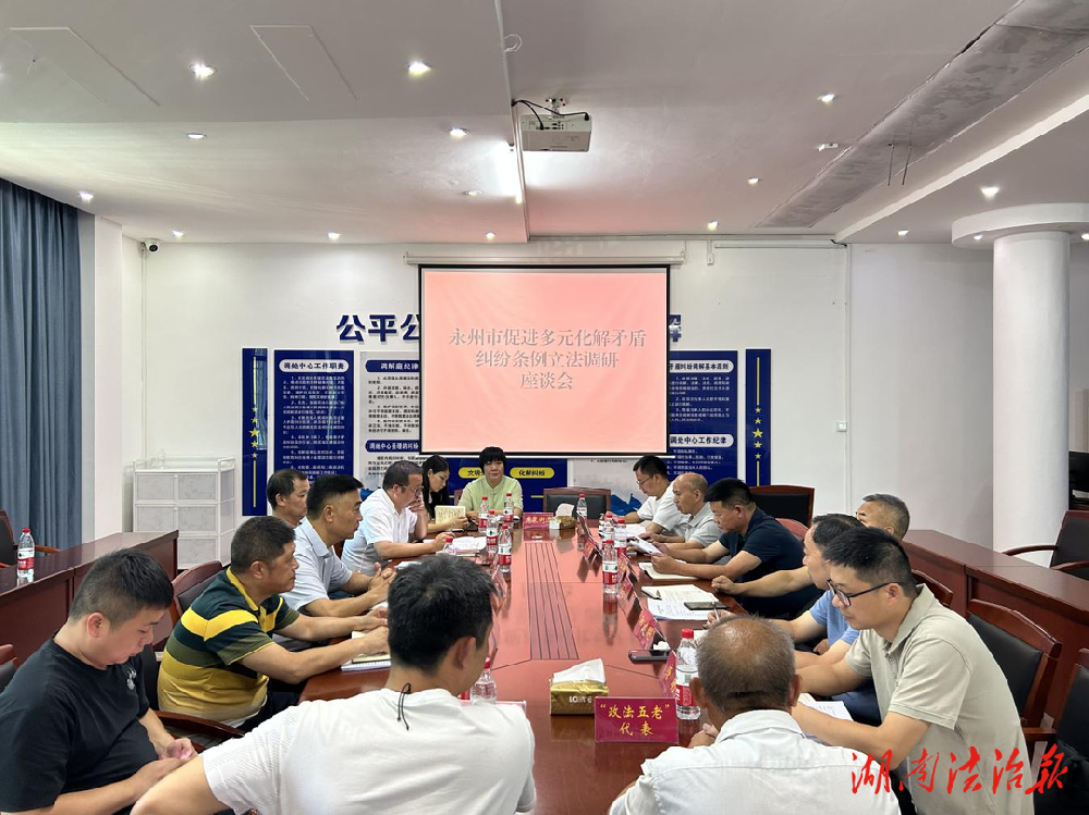湖南法治报讯(通讯员 何倩)为进一步加强多元化解矛盾纠纷调解工作,通过行业调解完善丰富多元解纷大平台,实现矛盾纠纷防患于未然,永州市立法调研组于7月23日来新进行促进多元化解矛盾纠纷条例立法调研。