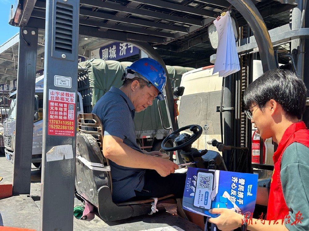 同日,黄兴司法所组织的“守护钱袋子 护好幸福家”专题普法活动在黄兴镇晟象物流园举行。活动现场,大学生志愿者们以转盘答题的形式,让货车司机在趣味中学习了民法典、道路安全、禁毒、反电诈等多领域法律知识。活动共发放宣传资料200余份,奖品和礼品150余份,实现了普法与关怀的双重送达,赢得了货车司机们的广泛好评。