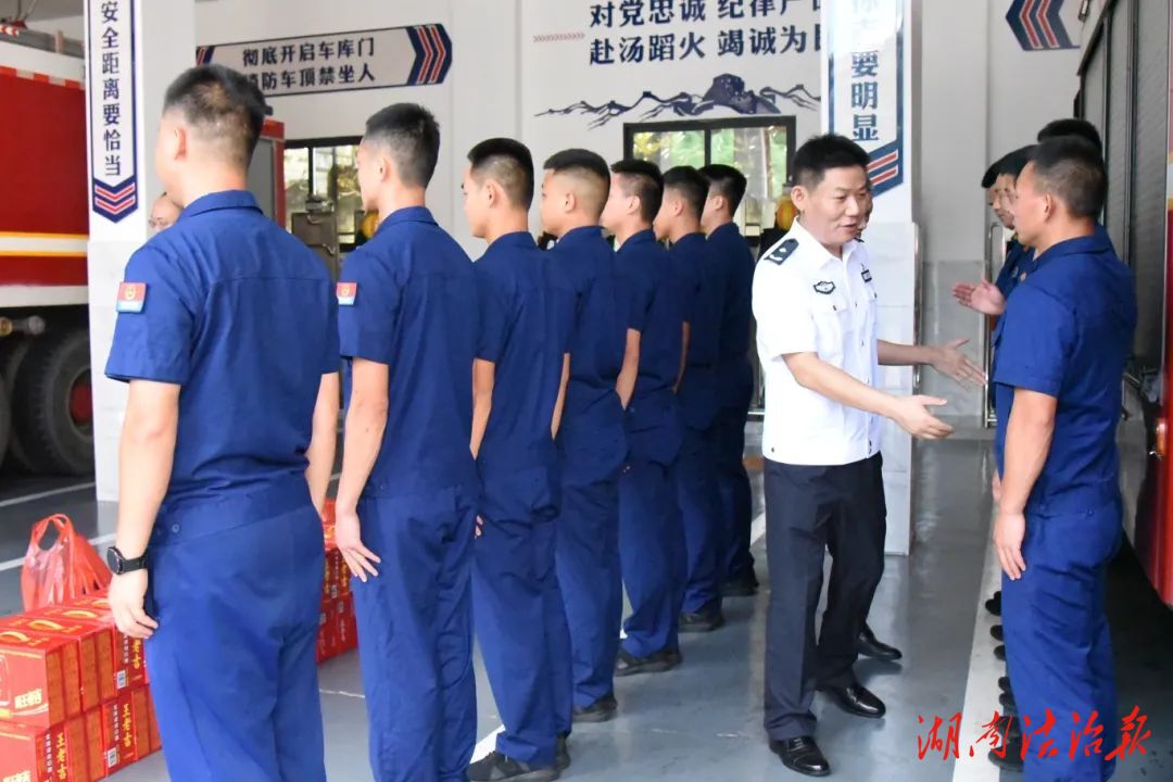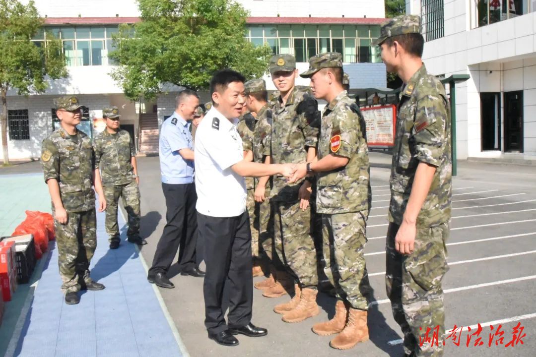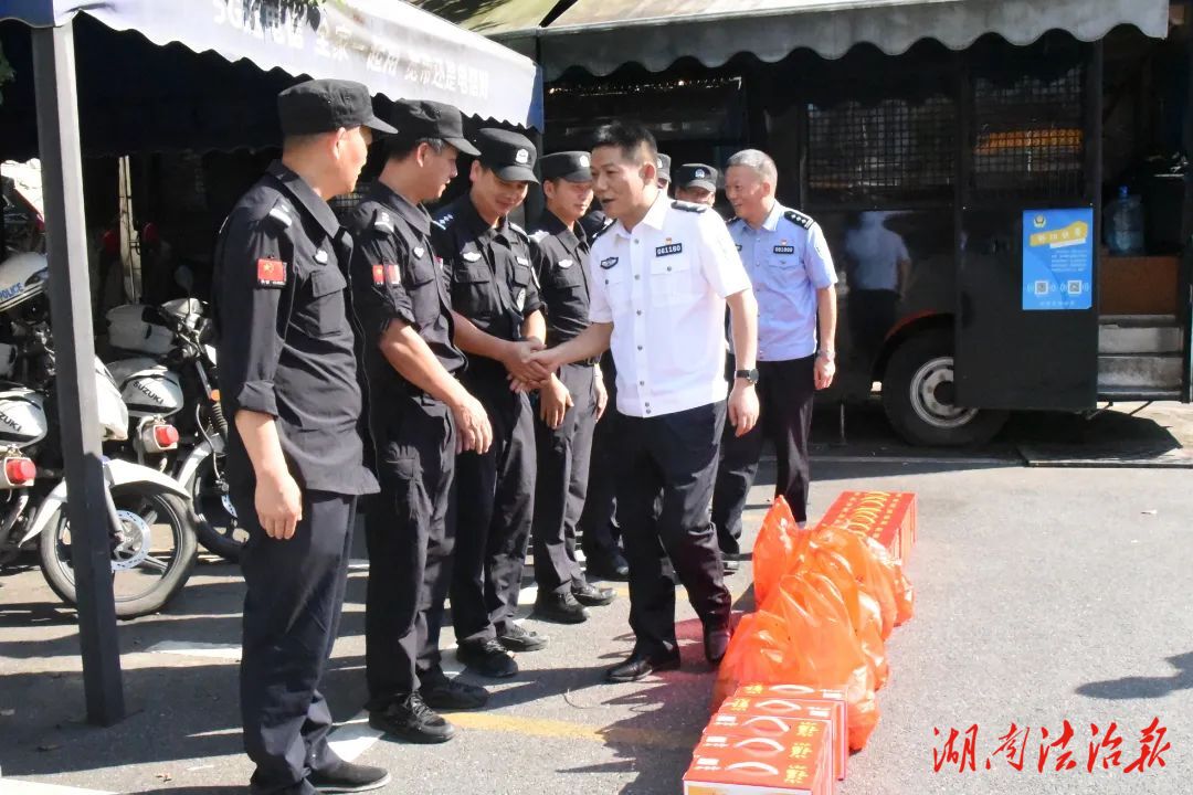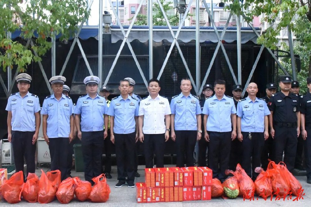 湖南法治报讯(通讯员 龙嘉莉)7月24日,副县长、县公安局党委书记、局长尹向锋,县公安局党委副书记、政委谢继武带领指挥中心、警务保障室相关负责同志,代表局党委看望慰问消防、武警官兵及基层所队一线执法执勤民辅警,为他们送去饮料、西瓜等消暑纳凉慰问品,并现场解决执法执勤、后勤保障等方面问题,督导检查夏季治安打击整治行动进展情况。
