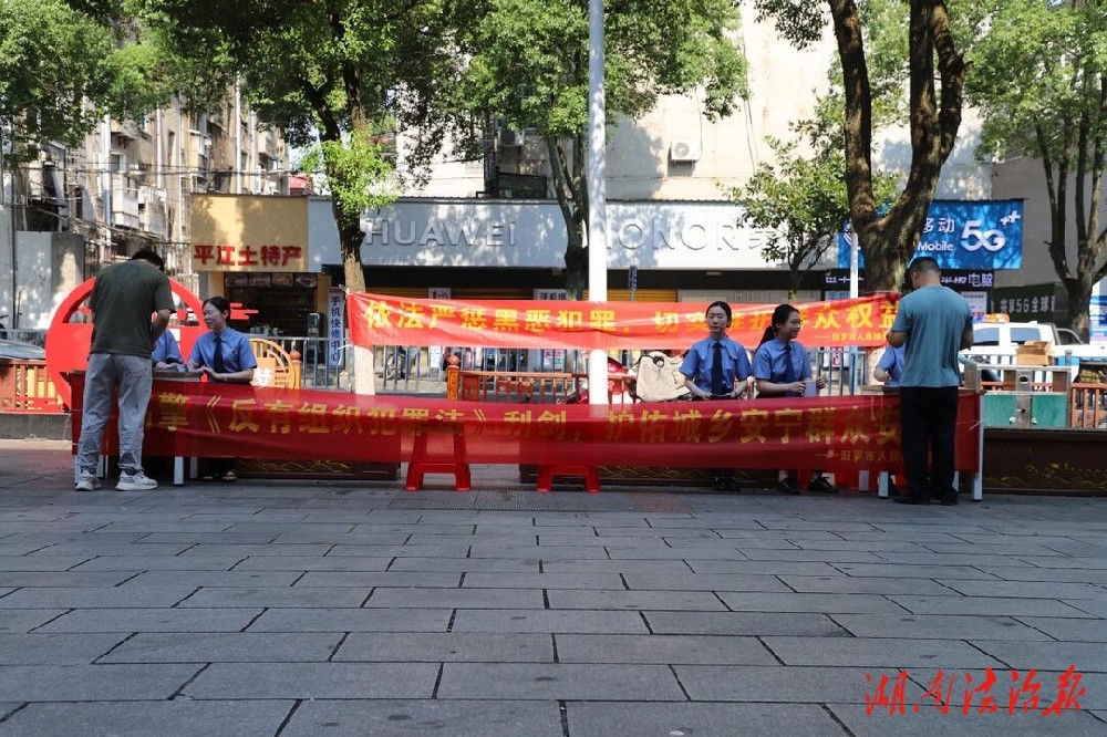 湖南法治报讯(通讯员 罗涛涛)为进一步加大常态化扫黑除恶斗争宣传力度,提升群众对有组织犯罪的知晓率和运用法律武器打击、防范黑恶势力的能力,7月25日,汨罗市检察院干警在市中心天恒超市前坪开展《反有组织犯罪法》普法宣传活动,引导社会公众增强防范意识,自觉抵制相关违法犯罪活动。