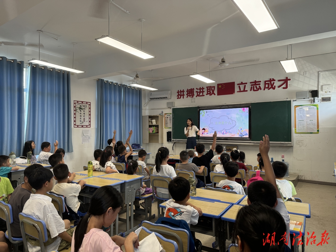 湖南法治报讯(通讯员 何涛)为进一步强化居民法治意识和安全防范意识,丰富青少年暑期生活,引导青少年健康成长,7月25日长沙县司法局果园司法所邀请湖南为君律师事务所律师单雨丝,组织辖区中小学生共60余人,在果园中学举办了以“大手牵小手 普法一起走”为主题的预防青少年违法犯罪普法知识讲座。镇平安法治和应急管理办、镇团委、镇关工委等相关部门一同参与,辖区内的大学生也积极主动参与到此项活动中来。
