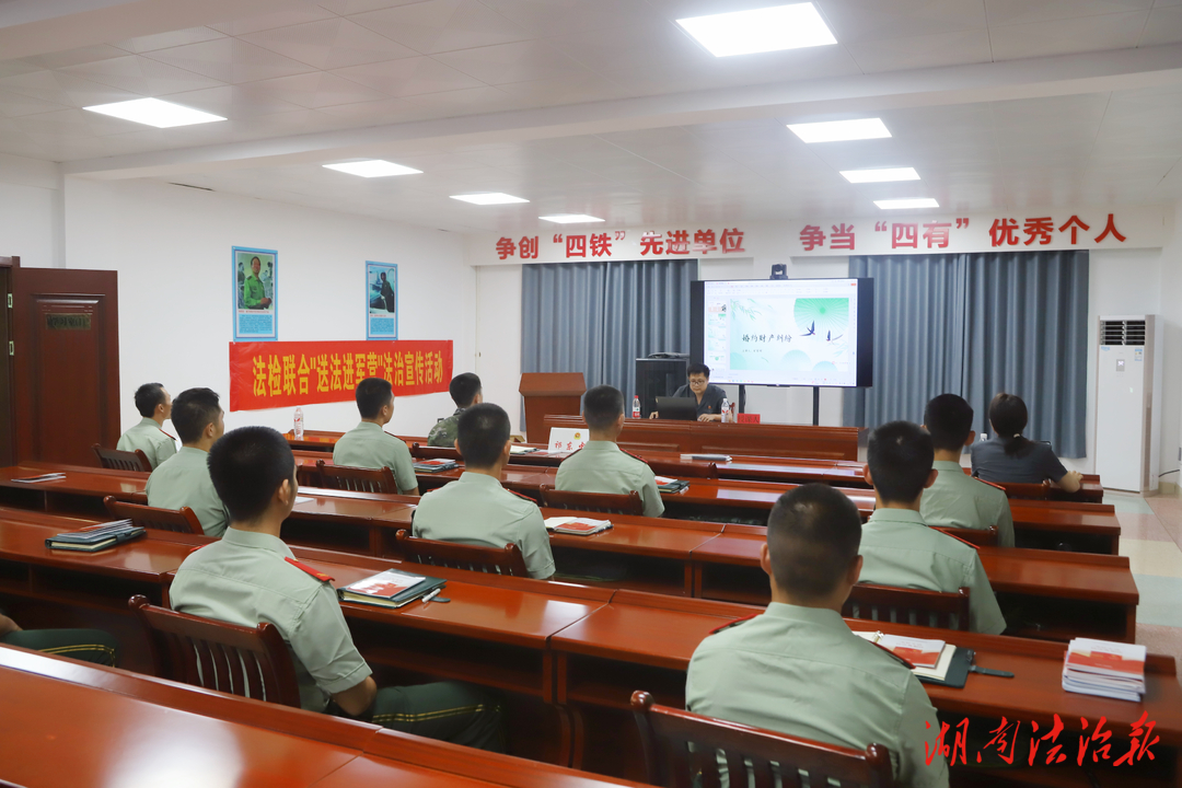 湖南法治报讯(通讯员 李恺欣)为弘扬法治精神,进一步提升武警官兵的法治素养和风险防范能力,维护军人军属的合法权益,7月30日,祁东县人民法院联合祁东县人民检察院到武警衡阳支队执勤二大队祁东中队开展“送法进军营”活动,为最可爱的人送上特别的“八一贺礼”。
