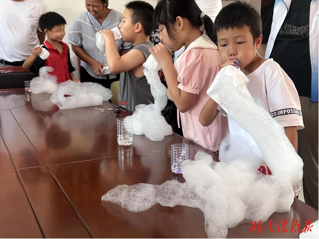 志愿者们化身科学魔术师,用简单的道具和神奇的科学原理,为孩子们带来了一场场精彩的科普实验。从“泡泡龙”的奇妙到酒度计的精确测量,每一个实验都让孩子们瞪大了眼睛,惊叹不已。