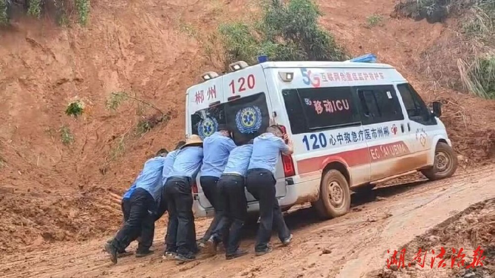“集合集合,请求支援,灾区送出来一位重症患者,需要紧急救援,道路淤泥阻塞,需要帮忙推车”,负责值守八面山一侧桥边的黄仁杰一边狂奔至何家山村一侧的指挥点,一边为一辆鸣笛不止的救护车开路向前。正在点位值守的众人闻言,各重点区域留下一人维持秩序后,皆不约而同地集合一处往救护车所在山坡上冲,来不及细想与丝毫迟疑,狂奔赶来的苏仙青年突击队们双手承托住生命的希望,倾尽全力推进救护车稳步前进。