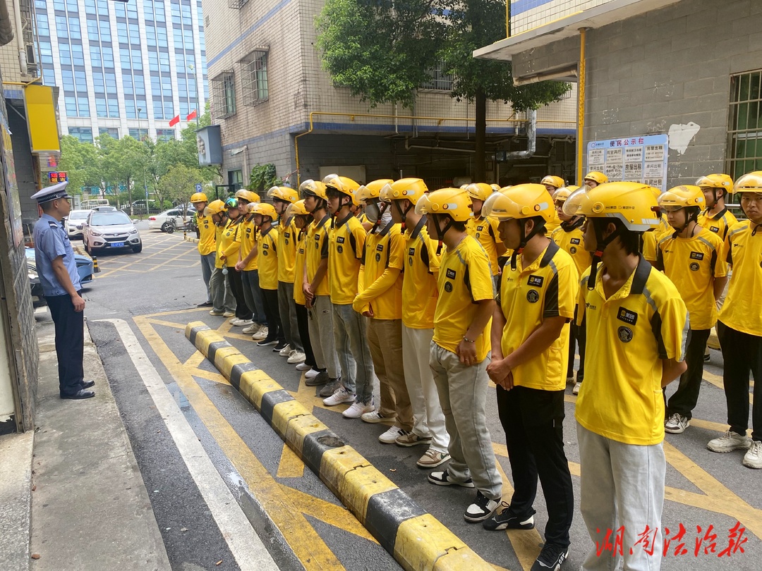 街道巡逻防控队员、社区工作人员在星沙大道对不文明交通行为进行劝导。