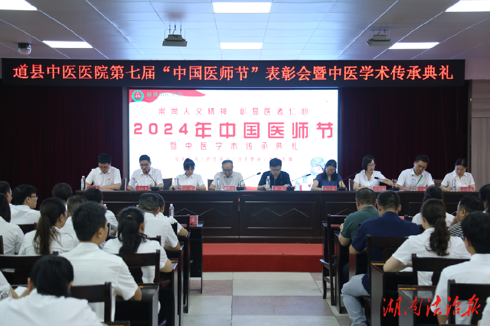 湖南法治报讯(通讯员 何莉萍 唐海莲)为传承伟大抗疫精神,赓续中医传承文化。8月19日下午,道县中医医院在大会议室召开以“崇尚人文精神,彰显医者仁心”为主题的第七届“中国医师节”表彰暨中医学术传承典礼。县委常委、组织部长陈葳出席会议并讲话。县卫健局局长赵小花参加颁奖仪式。会议由道县中医医院党委委员、副院长吴进良主持。