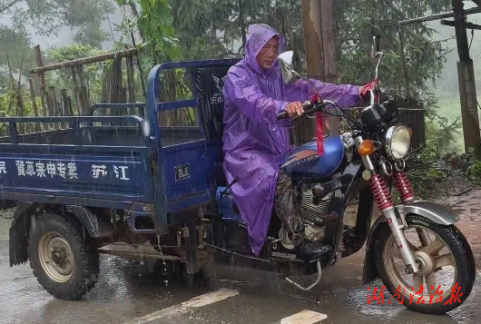 8月15日下午,资兴市黄草镇秋木村迎来又一轮降雨,一时间风雨大作。刚从灾情中“缓”过来,这场雨可能会造成新的险情,秋木村辅警庞彪坐不住了,他穿上雨衣,骑上三轮摩托车,又开始去各处“叫应”,提醒村民和救援队伍赶紧撤回安全地带。