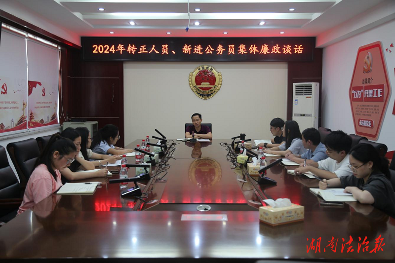 湖南法治报讯(通讯员 奉雅奇)为进一步加强对干警的教育、管理和监督,引导青年干警筑牢信仰之基、夯实廉政之基,8月21日,蓝山县人民检察院开展2024年转正人员、新入职干警集体廉政谈话。