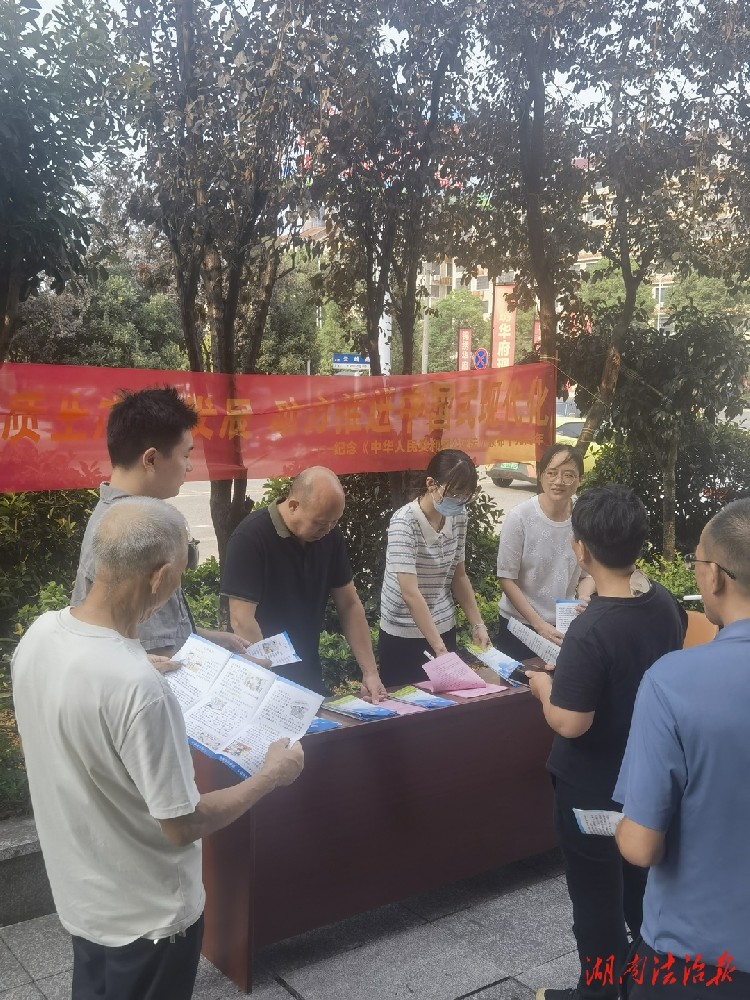 湖南法治报讯(通讯员 王敏)8月27日下午,新邵县公证处以“公证护航新质生产力发展、助力推进中国式现代化”为主题,联合法律服务志愿者、专职律师在新邵县酿溪镇柏树社区举办“纪念《中华人民共和国公证法》颁布十九周年”宣传活动。
